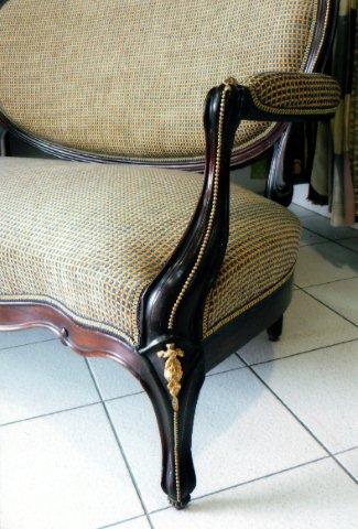 Restauration d'un siège Napoléon III, du 19ème siècle, en bois de palissandre de Rio et bronzes dorés. client: particulier.