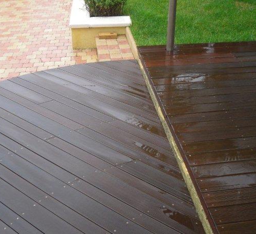 Pose d'un platelage pour terrasse, en bois exotique. client: particulier. CASTRIES 2010