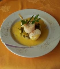 Côté cuisine, le Chef Évelyne, Maître Restaurateur, vous propose ses plats cultes à base de coquilles Saint-Jacques, foie gras, parmentier de canard et autres réjouissances qui varient au fil des saisons.
