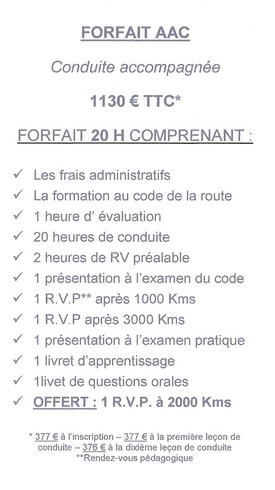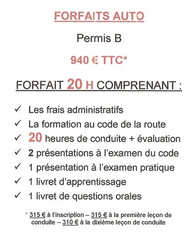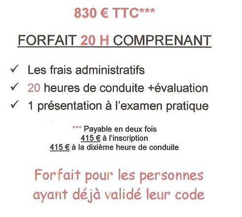 - Forfaits permis de conduire 20H ou 25H